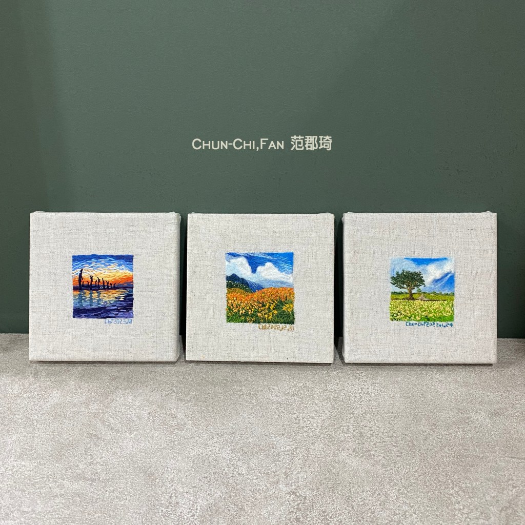 景重新呈現的刺繡畫作品。藉由小尺寸的刺繡畫